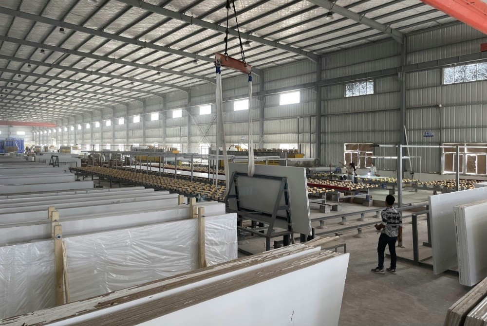 柬埔寨高金石有限公司是由福建磐珉新材有限公司于201911月在特區(qū)設(shè)立,主要生產(chǎn)可應(yīng)用于住宅和商業(yè)室內(nèi)裝飾的環(huán)保石英石板材產(chǎn)品,包括廚房臺面、浴室臺面、辦公桌、墻板等,項目分二期建設(shè),目前一期投資1000萬美元,建筑面積24000平方米,員工230人,年出口1800多萬美元;二期計劃擴(kuò)建用地28000平方米。
