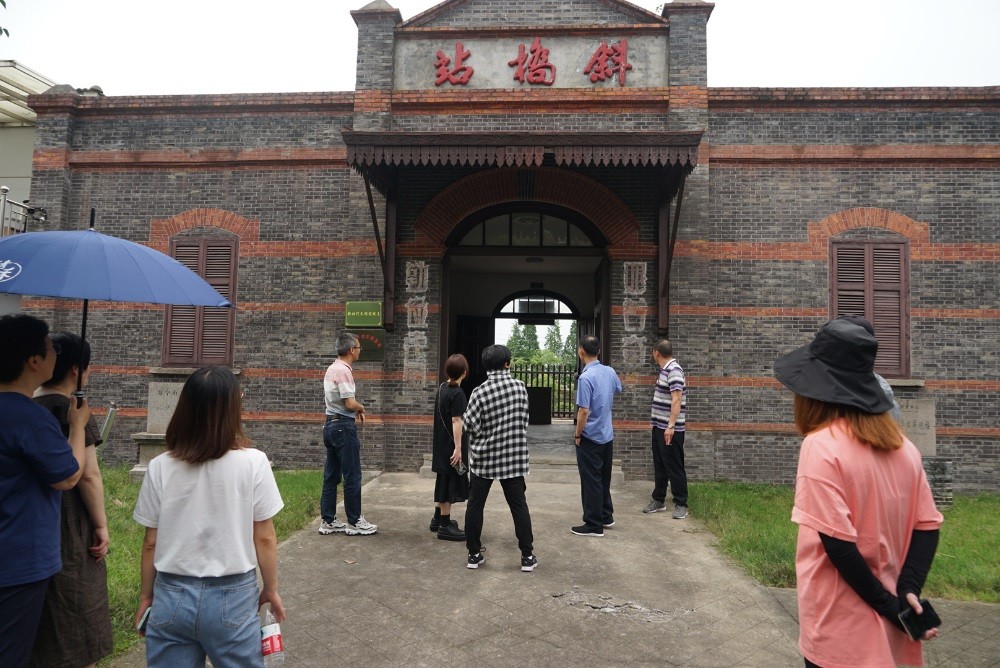 首先,全體黨員來到斜橋火車站參觀。斜橋火車站建于清宣統(tǒng)元年(1909年)8月,雖然從2004年開始,斜橋站停辦了客運業(yè)務(wù),但它是現(xiàn)今滬杭鐵路上保存最好的百年老站。而讓它更具有歷史意義的,是東西兩邊保存較為完整的碉堡炮樓,這里陳列著當(dāng)年日軍侵華的罪證。