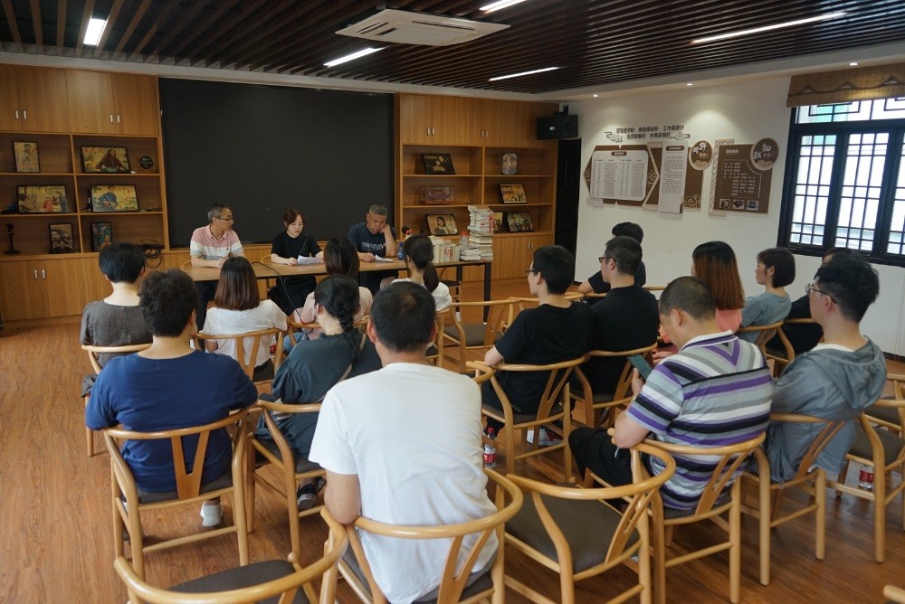 參觀完火車站和名人館,黨員們來到智慧書屋,體驗智慧書屋的便利與溫馨。該書屋以超高頻技術(shù)為基礎(chǔ),將自助終端設(shè)備與網(wǎng)絡(luò)、小程序完美融合,以24小時無人值守自助體驗為特色。隨后黨員們在小鎮(zhèn)會客廳坐下來,圍繞米谷、褚學(xué)潛、殷白等名人事跡展開學(xué)習(xí),在學(xué)習(xí)中進(jìn)一步升華認(rèn)知。