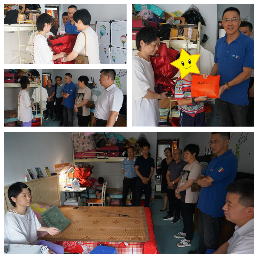 7月10日,正值盛夏高溫天氣,集團領(lǐng)導(dǎo)周小紅、張明發(fā)等一早驅(qū)車40多公里趕往尖山員工宿舍,看望慰問員工張秋月及其家屬,送去了鮮花和5萬元的關(guān)愛基金,也送去了集團公司對基層員工的祝福。