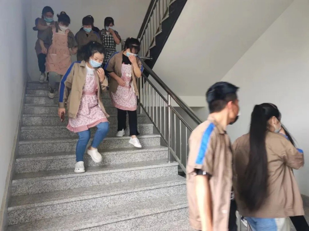 公司領(lǐng)導(dǎo)在得知火場(chǎng)情況后(火警鈴響起),立即作出全部疏散命令,各車(chē)間主任、班組長(zhǎng)有序組織人員通過(guò)疏散逃生通道撤離到“緊急集合點(diǎn)”并及時(shí)清點(diǎn)人員。
