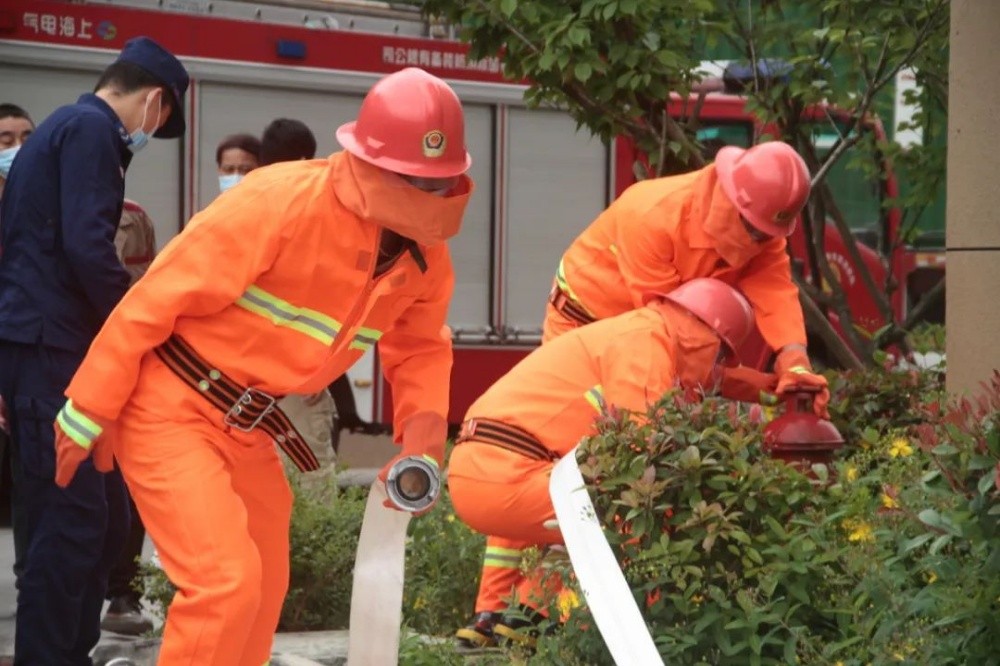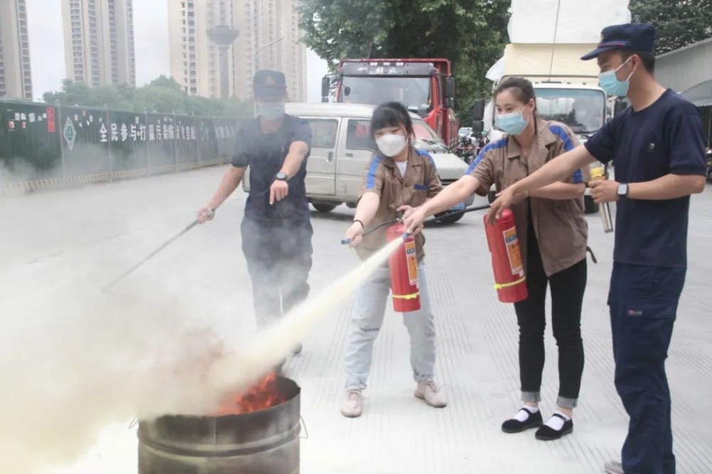 任何人員發(fā)現(xiàn)火災(zāi)后應(yīng)立刻呼叫附近員工參與滅火救援,在一分鐘內(nèi)組成第一滅火力量。在鎮(zhèn)消防隊(duì)的指導(dǎo)下,通過(guò)演練干粉滅火器滅火、推車(chē)滅火器、水帶連接消火栓出水演練,使員工掌握發(fā)生火災(zāi)后正確的滅火力量調(diào)配和撲救步驟。