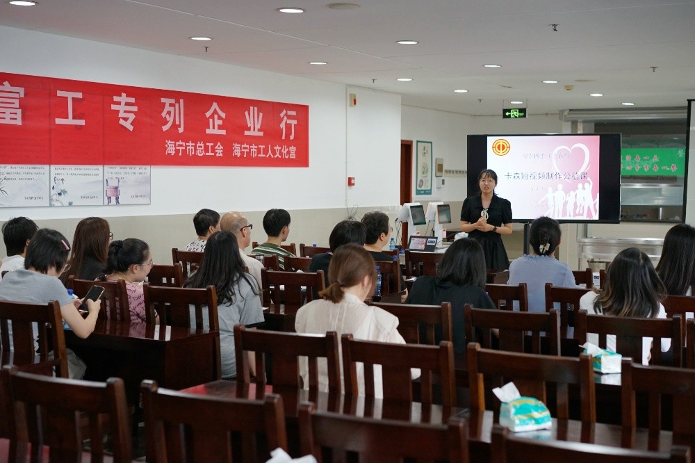 短視頻拍攝制作已成為當(dāng)前主流趨勢,日常工作和生活都離不開它。為了增強員工綜合技能,激發(fā)和培養(yǎng)員工興趣喜好,豐富員工文化生活,更好地適應(yīng)新時期社會發(fā)展需求,7月27日下午,我集團舉辦手機短視頻制作培訓(xùn)班,邀請海寧市工人文化宮沈愷老師現(xiàn)場授課,20多位視頻制作愛好者參加。