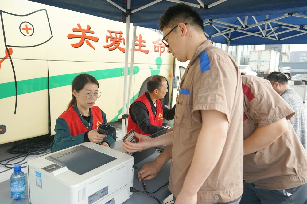 當(dāng)天上午,整個(gè)廠(chǎng)區(qū)洋溢著愛(ài)的暖流。只見(jiàn)大家在采血車(chē)前有序填寫(xiě)獻(xiàn)血登記表、測(cè)量血壓、征詢(xún)體檢、初篩采樣。隨后合格者上車(chē)獻(xiàn)血,奉獻(xiàn)愛(ài)心。