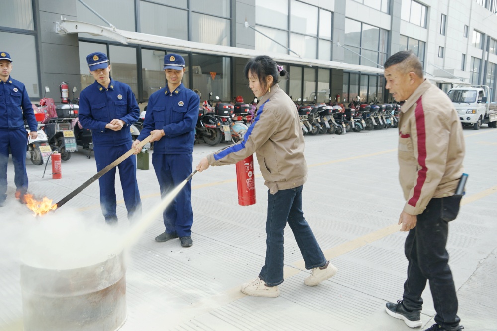 員工代表進(jìn)行滅員工代表進(jìn)行滅火器使用實(shí)操,尤其是對(duì)新近入職員工,要求每人必須當(dāng)場(chǎng)操作,確保人人會(huì)用滅火器。