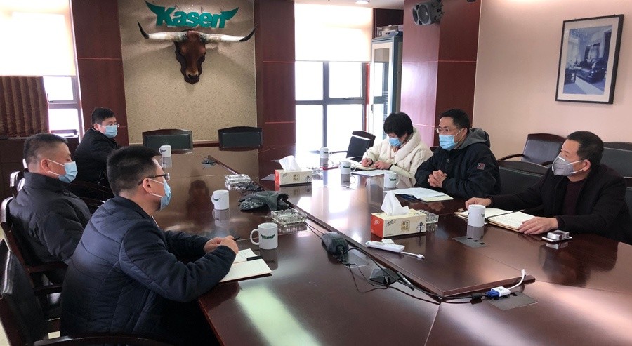 面對當(dāng)前疫情非常時期,2月10日下午,海寧市委書記朱建軍、市委辦主任陳中權(quán)等一行三人來到卡森集團(tuán)總部調(diào)研指導(dǎo)疫情防控工作及企業(yè)復(fù)工準(zhǔn)備情況。集團(tuán)副總裁張明發(fā)、周小紅、王柏良作了相關(guān)情況的匯報。