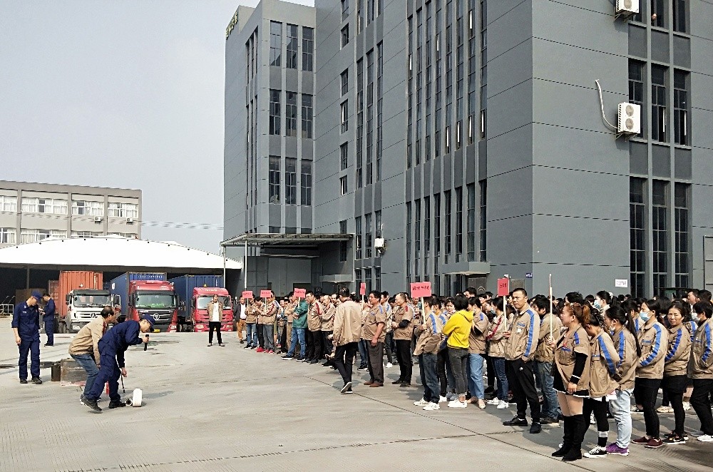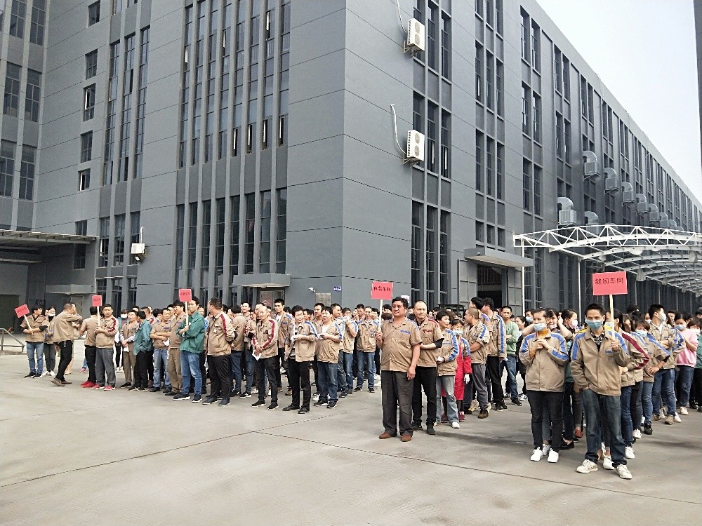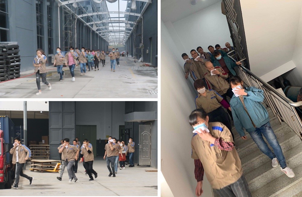 隨著警報(bào)響起,應(yīng)急疏散演練正式開始,全體員工聽到警報(bào)聲后,各車間班組長在門口引導(dǎo)員工迅速離開車間,員工用濕毛巾之類物品捂住口鼻,彎腰低姿快速有序地沿防火安全疏散通道向外跑。各部門負(fù)責(zé)人將員工引導(dǎo)至空曠安全地帶,各班組長在確保車間內(nèi)人員全部離開后,迅速沿員工疏散方向撤離,隨即各車間主任清點(diǎn)人數(shù),并層層向上匯報(bào)。