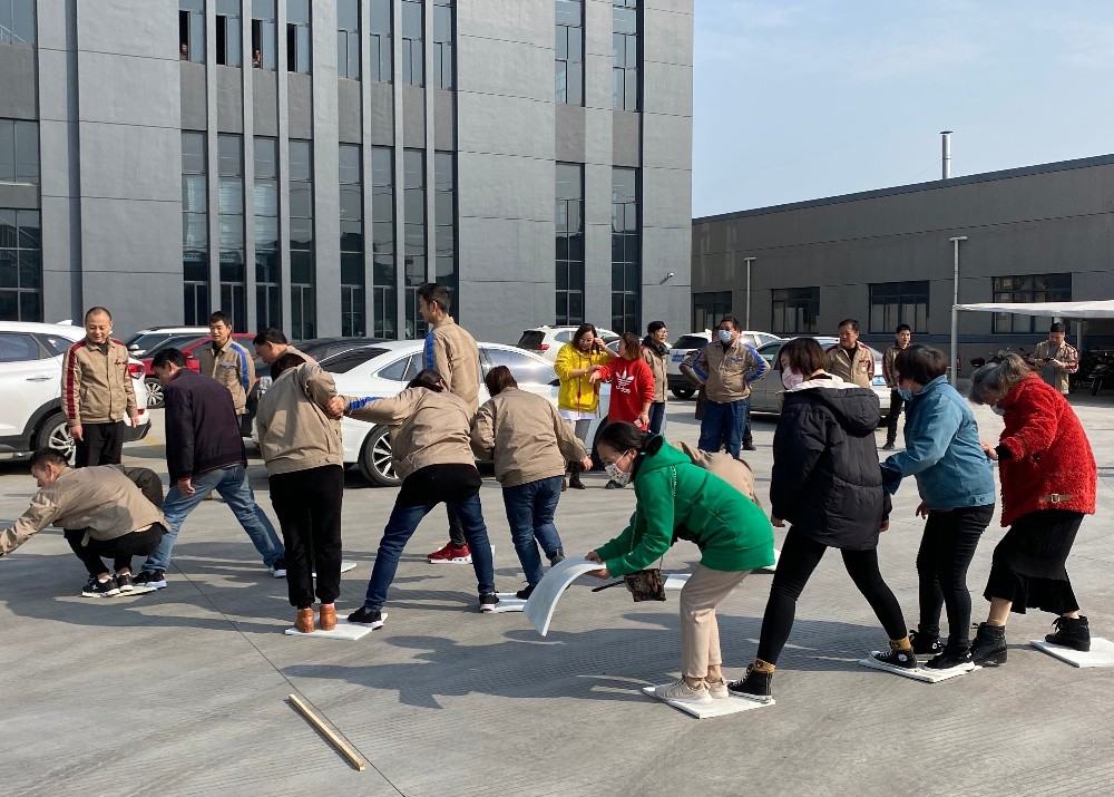 本次活動共有63名留守外地員工參加。活動開始前,由裁判員介紹比賽規(guī)則為每4人一組進行趣味活動,每人四塊海綿,通過腳踩磚頭,四塊磚頭輪流交換的方法穿過賽道,腳不能著地,到達終點線。準(zhǔn)備就序后,裁判一聲令下,比賽正式開始,賽事緊張而激烈,員工們個個鉚足了勁,使出渾身解數(shù)與之較量。一旁觀戰(zhàn)的員工為之吶喊助威,現(xiàn)場歡笑聲、加油聲此起彼伏,點燃著團隊們的激情。參賽員工有的采用“青蛙式”的蹦跳、有的采用“螃蟹式”的“橫行法”、有的采用“凌波微步式”。外來員工們雙手靈活地挪動磚頭,絲毫不見疲憊緊張的樣子。本次活動讓員工們體驗了運動的快樂、競爭的樂趣,讓緊張的工作多了一份趣味和童真,同時也加強了員工的團隊協(xié)作意識,營造了輕松愉悅的氛圍,