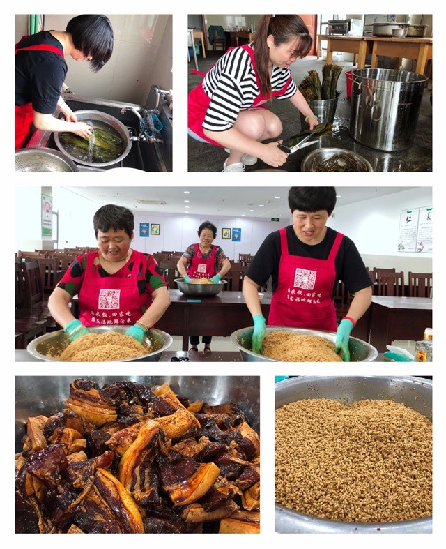 上午8點(diǎn),包粽子能手們?cè)缭鐏淼搅?3樓,洗粽葉,泡糯米、腌配料,每一項(xiàng)工作都在有條不紊地進(jìn)行中。